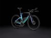 Einen ultraleichten Rahmen aus 800 Series OCLV Carbon, windschnittige Rohre mit Kammtail Virtual Foil-Profil (KVF), eine Speed Concept-Carbongabel mit aerodynamischem Profil, vibrationsdämpfendes IsoSpeed, integrierte aerodynamische Aufbewahrungslösungen für Verpflegung, Flüssigkeit und Pannenkit, einen drahtlosen, elektronischen SRAM Rival AXS 12fach-Antrieb mit SRAM AXS-Blips-Schalthebeln für eine aerodynamische Sitzposition beim Schalten, einen Rival AXS-Powermeter, einen vollständig integrierten Lenker samt Vorbau, einen triathlonspezifischen Bontrager Hilo Comp-Sattel für eine aggressive Aero-Sitzposition, zuverlässig zupac