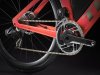 Einen ultraleichten Rahmen aus 800 Series OCLV Carbon, windschnittige Rohre mit Kammtail Virtual Foil-Profil (KVF), eine Speed Concept-Carbongabel mit aerodynamischem Profil, straßenglättendes IsoSpeed, integrierte Aufbewahrungslösungen für Verpflegung, Flüssigkeit und ein Pannenkit, einen drahtlosen elektronischen SRAM RED AXS 12fach-Antrieb mit SRAM AXS Blips-Schalthebeln, einen SRAM RED AXS-Powermeter, einen vollständig integrierten Lenker samt Vorbau, einen triathlonspezifischen Bontrager Hilo Pro-Carbonsattel für eine aggressive Aero-Sitzposition, zuverlässig zupackende Scheibenbremsen und aerodynamische Bontrager Aeolus RS